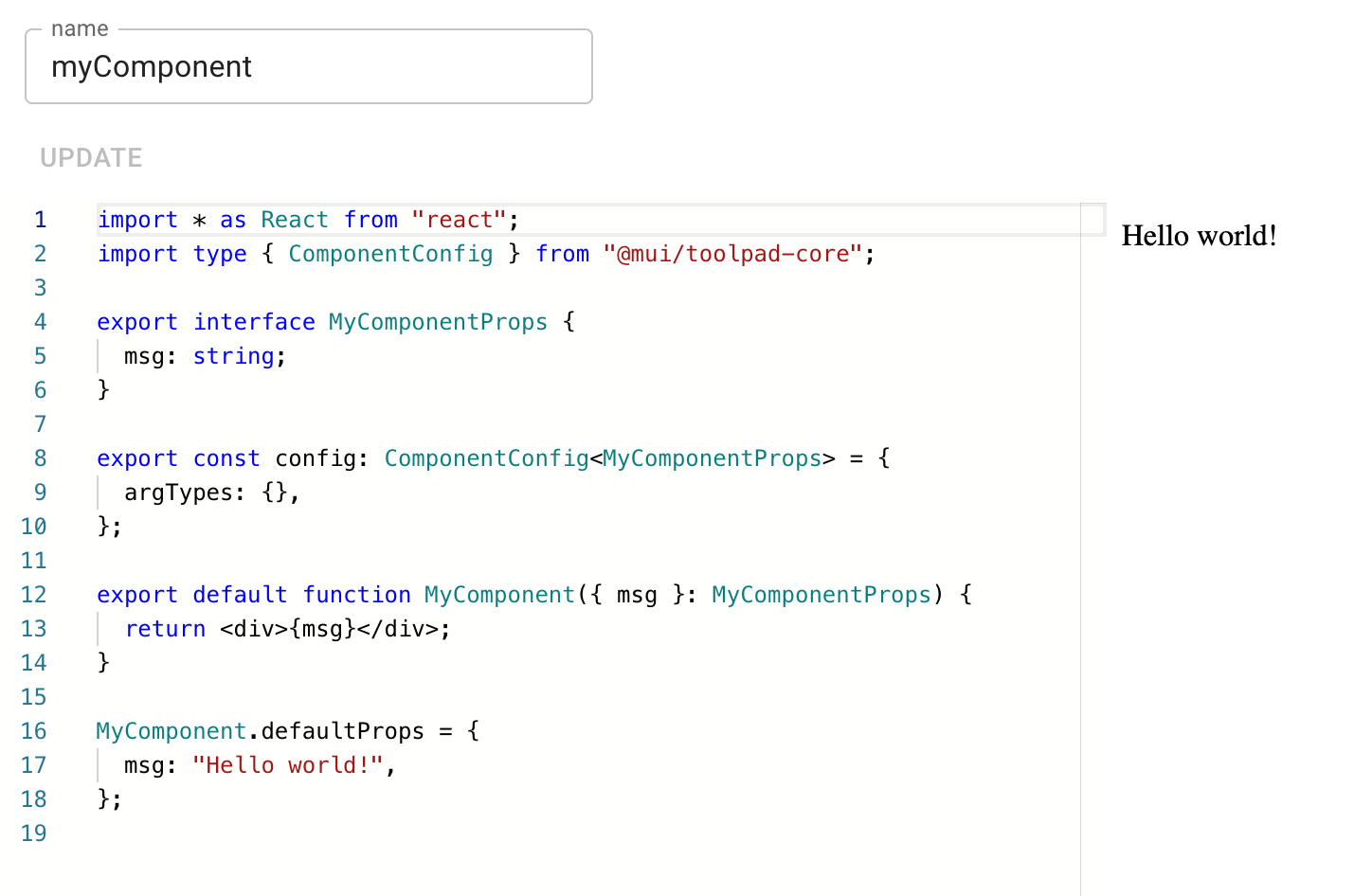 Have a custom component that you want to use? Bring it on! A component built in Toolpad can also be exported and used as URL.